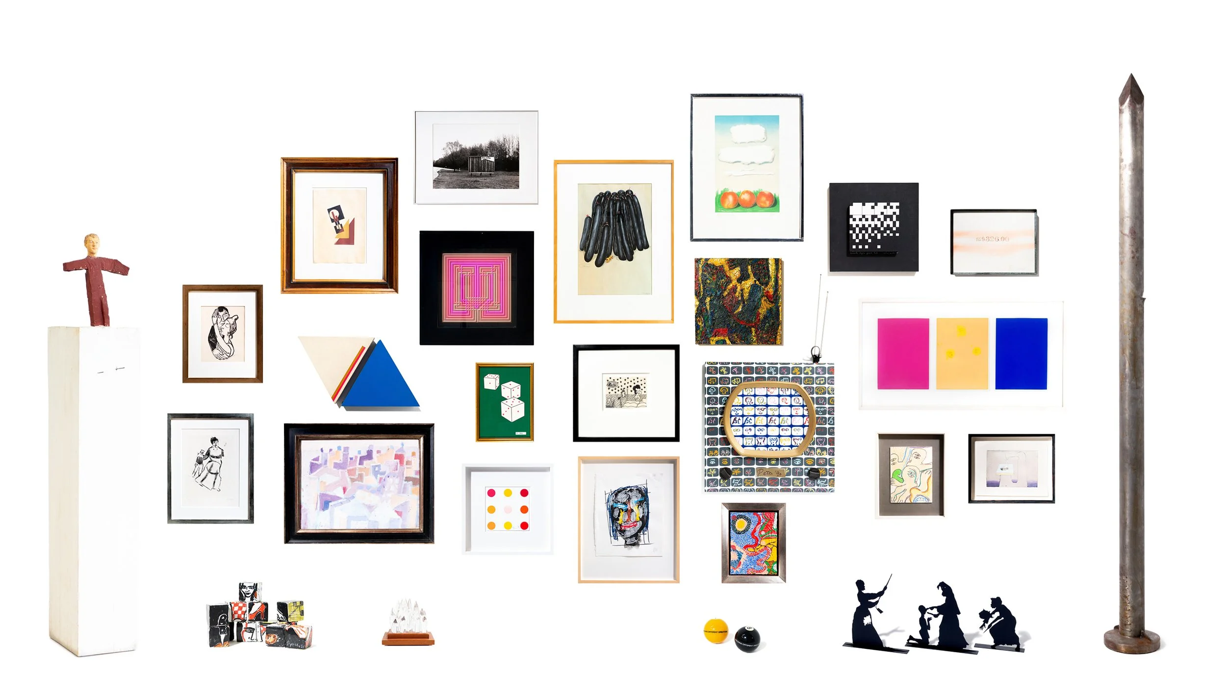Idealerweise enthält die Mail Fotos der Werke, Künstlernamen, Titel, Entstehungsjahr, Maße (ohne Rahmen), Technik, etc.